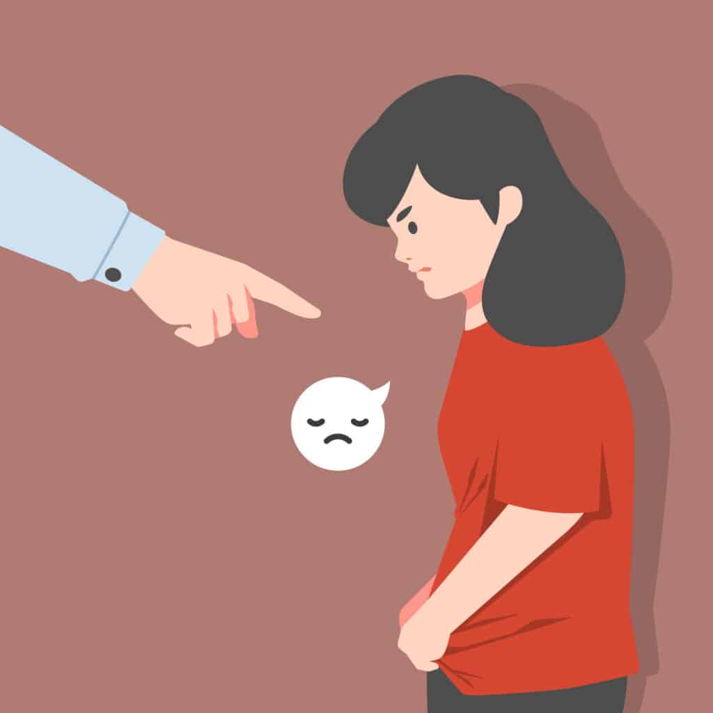 Dans un second temps, le professionnel amène le parent à prendre conscience que ce sont les mêmes phrases ou les mêmes façons d’agir qui sont utilisées par les adultes avec les enfants ou les ados et qu’eux aussi ressentent alors les mêmes émotions et le même sentiment d’être nul.